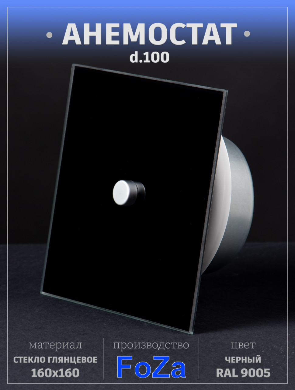 Анемостат со стеклянной внешней частью FOZA D 100 мм. Глянцевое стекло. Цвет Чёрный. RAL 9005. Квадратный в интернет-магазине «ВЕНТФОМ». Заказать с доставкой! Тел.: +7 (925) 201-33-89.