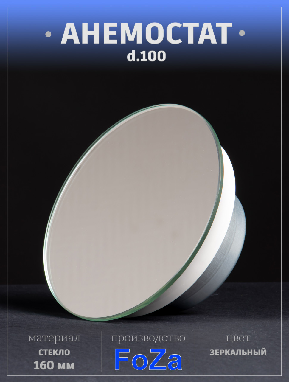 Анемостат со стеклянной внешней частью FOZA D 100 мм. Матовое стекло. Зеркальный круглый