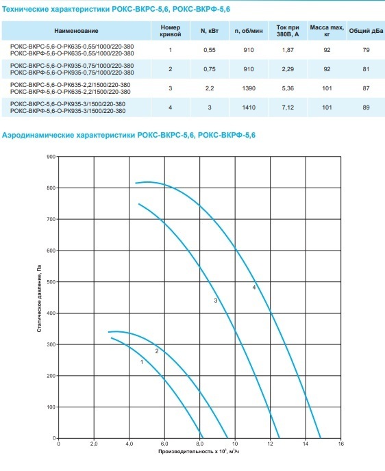 Вентиляторы выпускают с двумя типами рабочих колес РК635 и РК935 с различными расходными характеристиками.