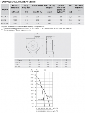 Вентиляторы изготавливаются из листовой стали и окрашены эпоксиднополиэфирной краской. Вентиляторы комплектуются центробежными рабочими колесами и однофазными электродвигателями (230В-50Гц).