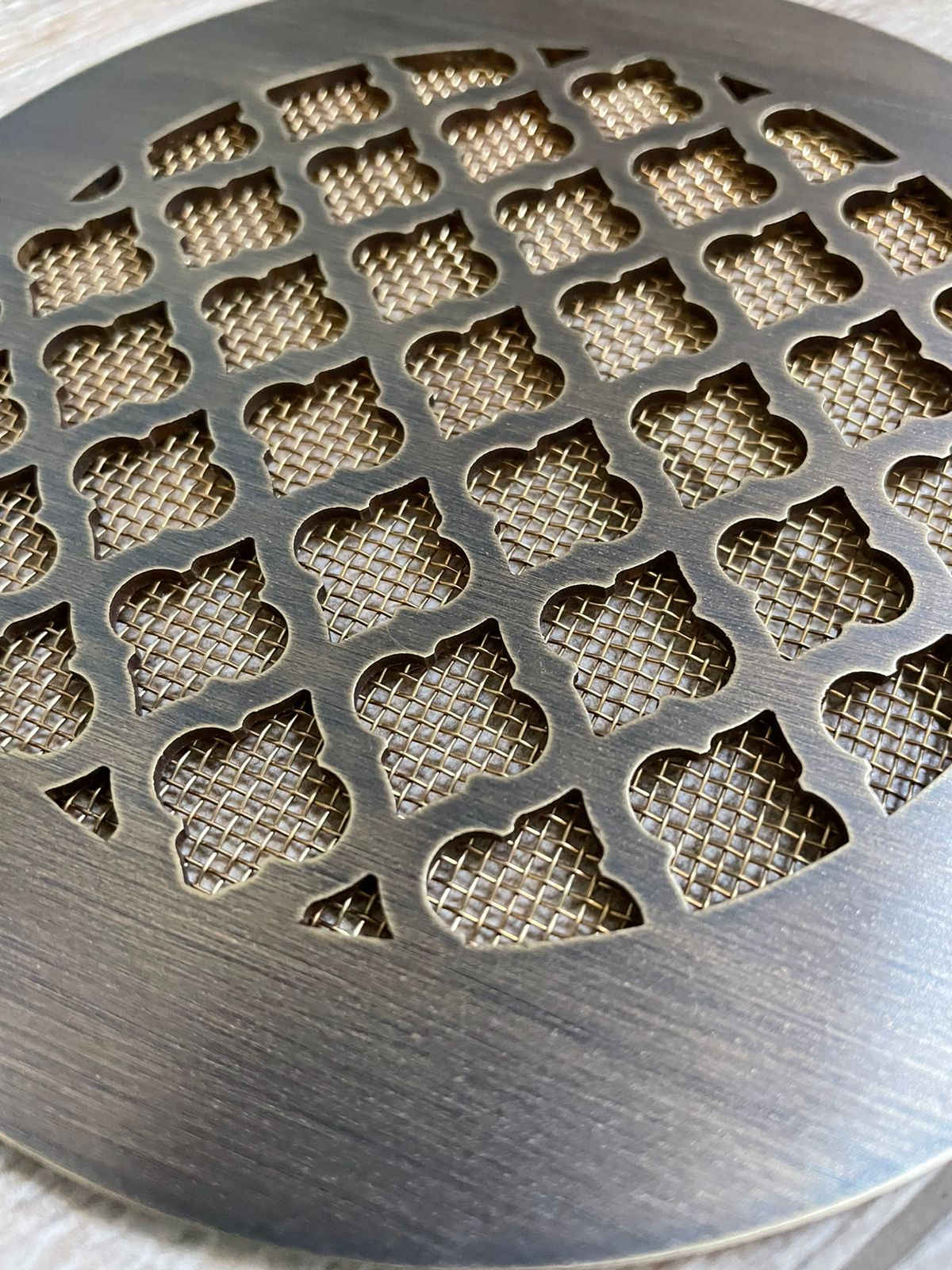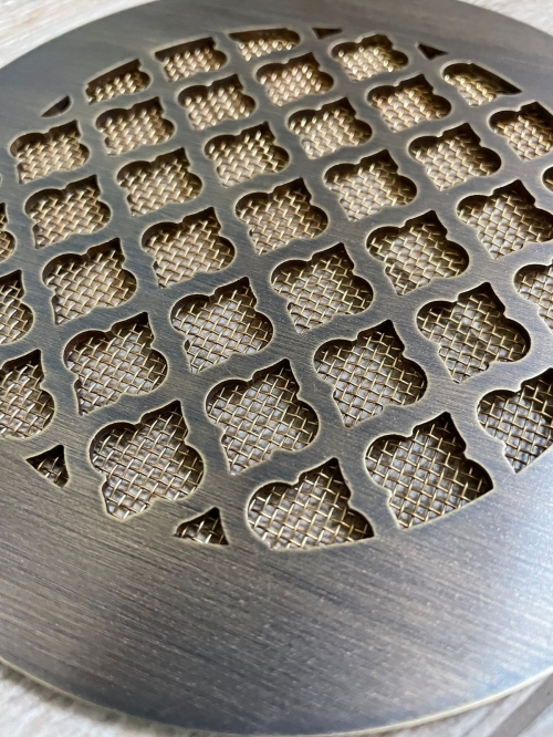 Латунная вентиляционная решётка круглая с патиной ЛРК 350 150мм