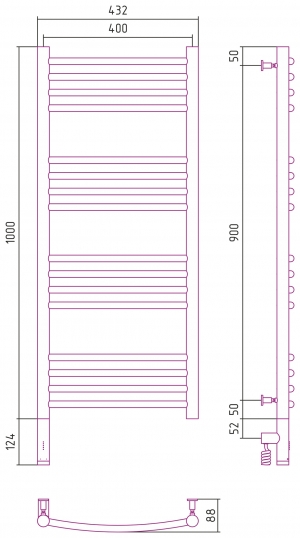 Полотенцесушитель электрический Сунержа Богема 3.0 1000x400