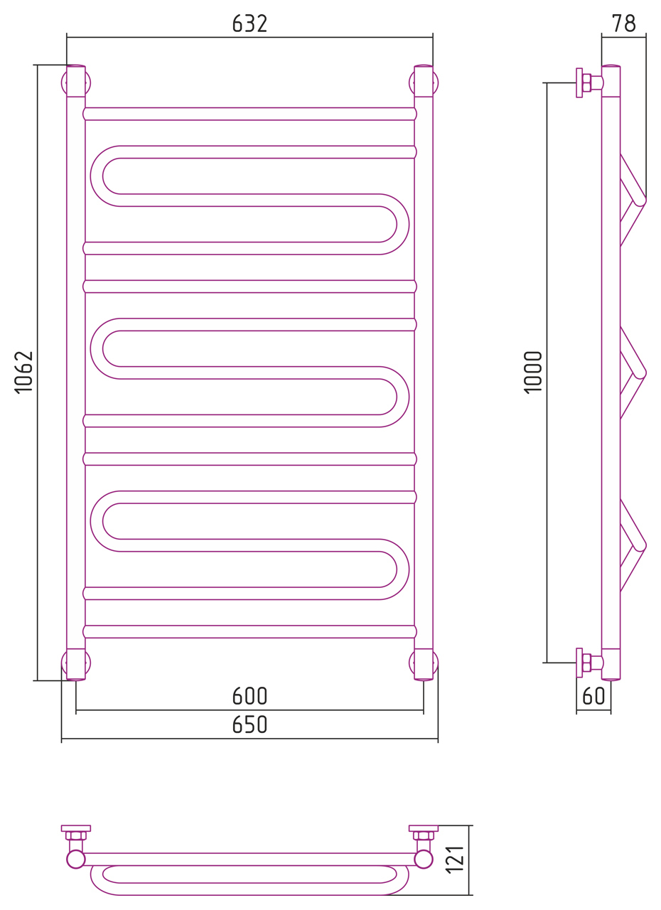 Внешние габариты (высота х ширина х глубина) (мм) : 1062х650x117
