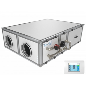 ОписаниеПодвесная приточно-вытяжная установка с пластинчатым рекуператором (с системой защиты от замерзания, эффективная работа до -35°С), водяным нагревателем и смесительным узлом с 2-х или 3-х ходовым клапаном (узел подбирается исходя из типа водоснабжения). Комплектуется воздушными клапанами с электроприводом (с возвратной пружиной), системой цифровой автоматики JetLogic с цветным сенсорным пультом управления и всеми необходимыми датчиками. Вентиляторы Ebmpapst серии EC (произведены в Германии).