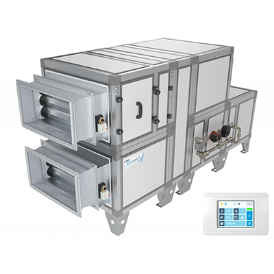 • В комплекте с воздушными клапанами, электроприводом, возвратной пружиной, системой цифровой автоматики JetLogic с цветным сенсорным пультом управления и всеми необходимыми датчиками.