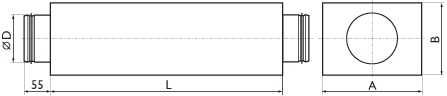 Корпус шумоглушителя Provent KS 160/600 изготовлен из оцинкованной стали, в качестве звукопоглощающего  материала используется минеральное волокно.