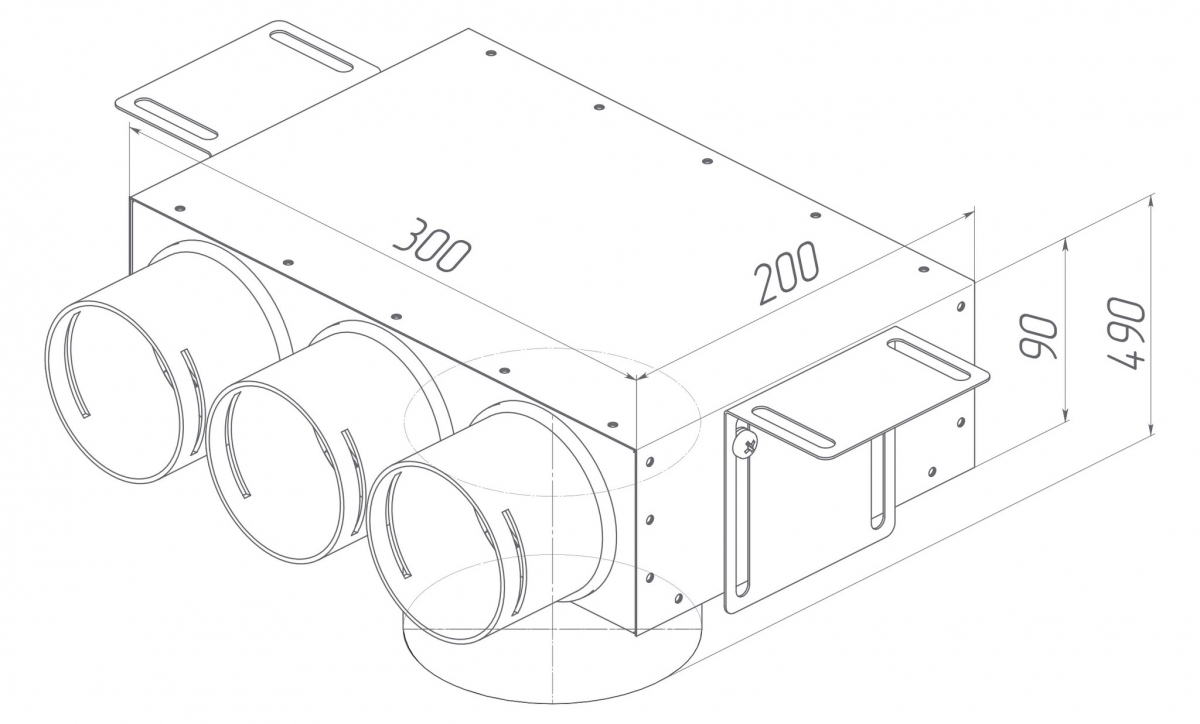 • Размеры (с присоединительными фланцами): 200 х 490 х 264 мм