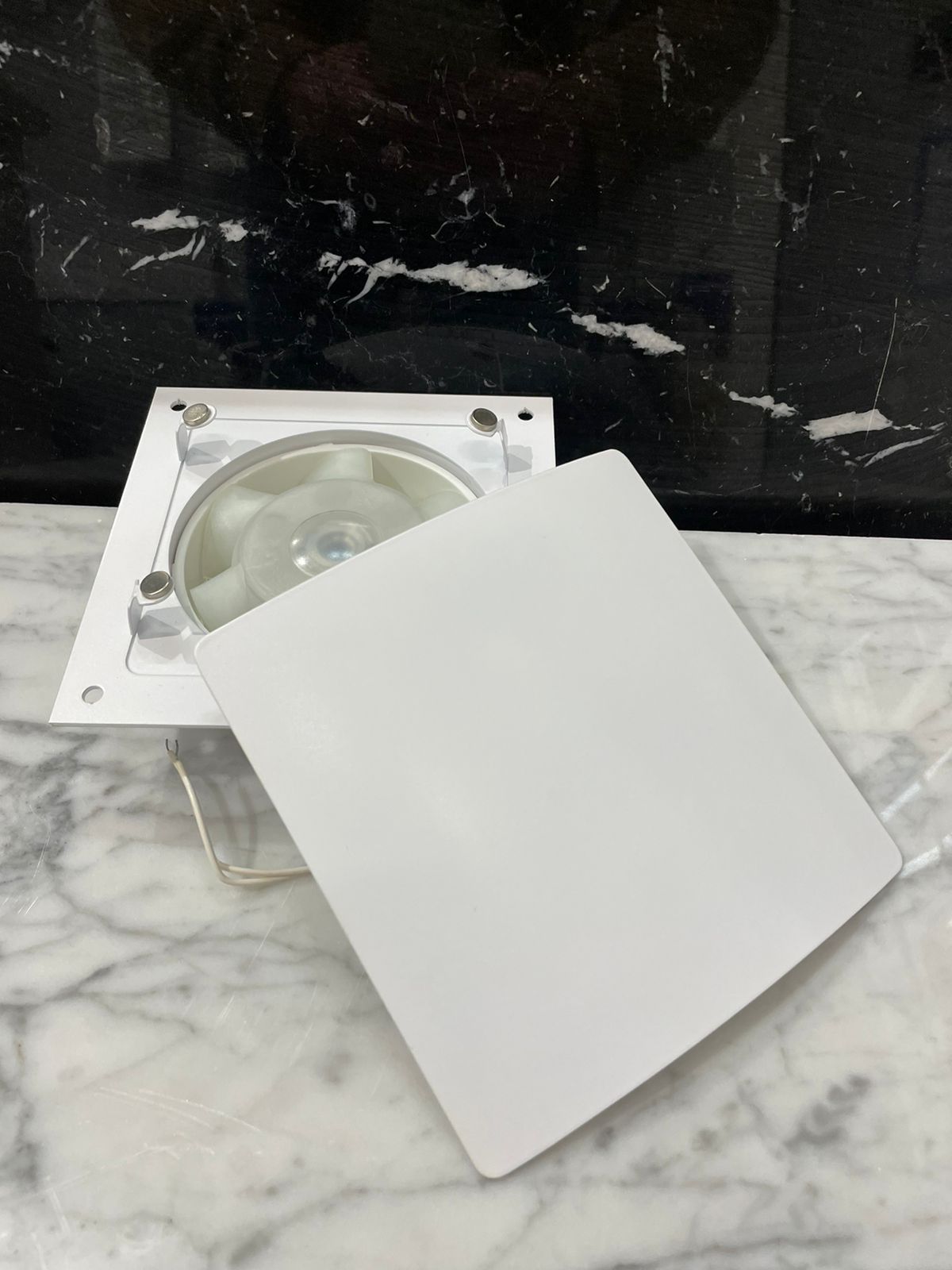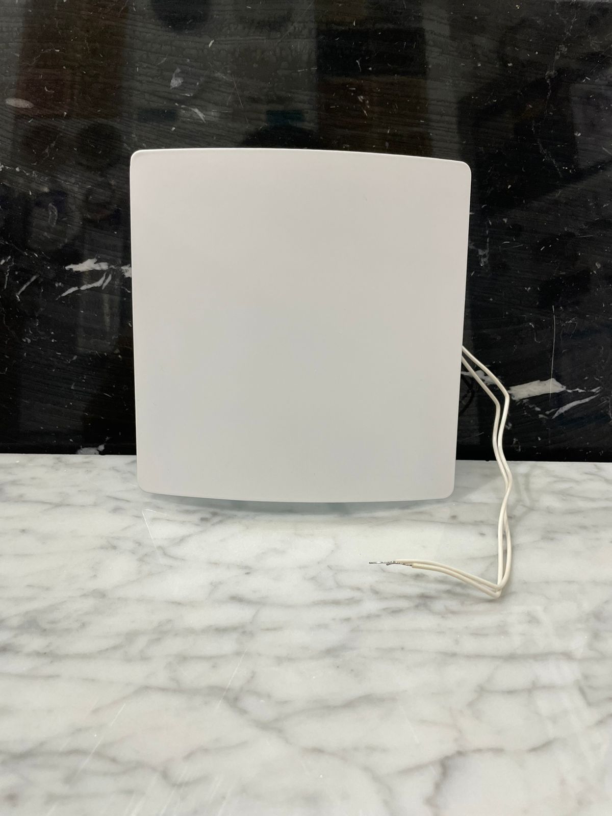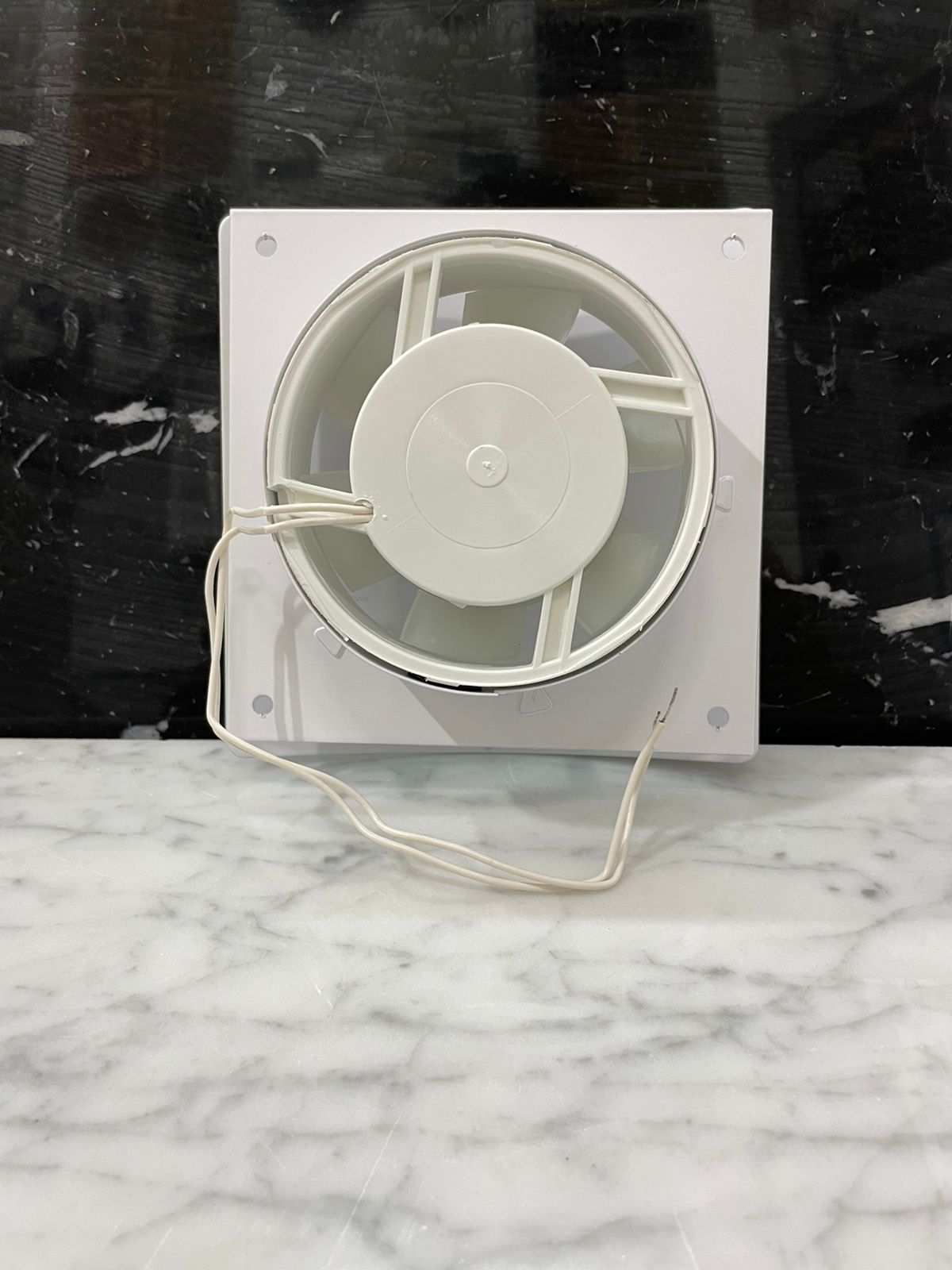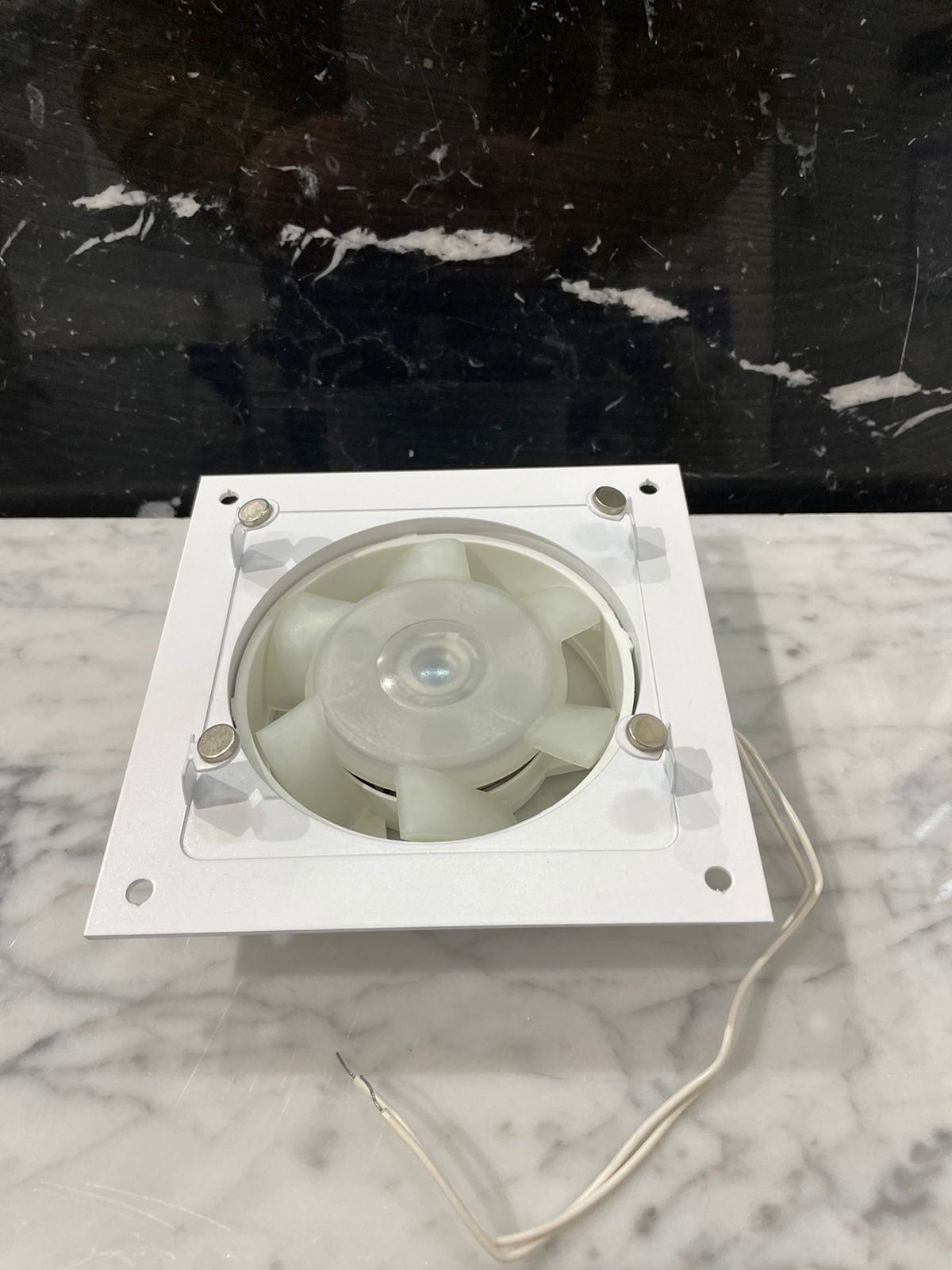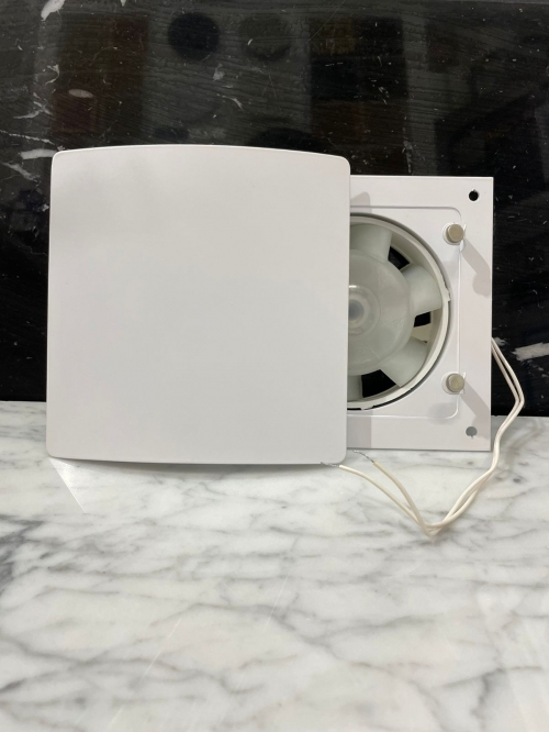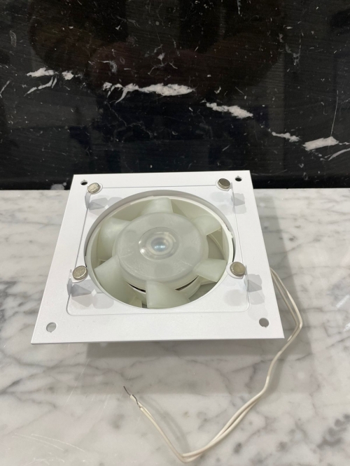 • Вентилятор белый металлический накладного типа.