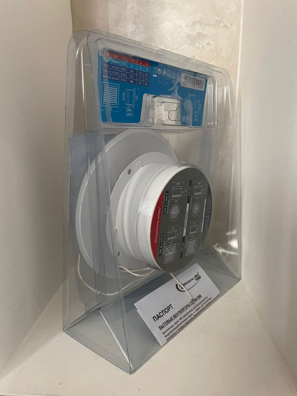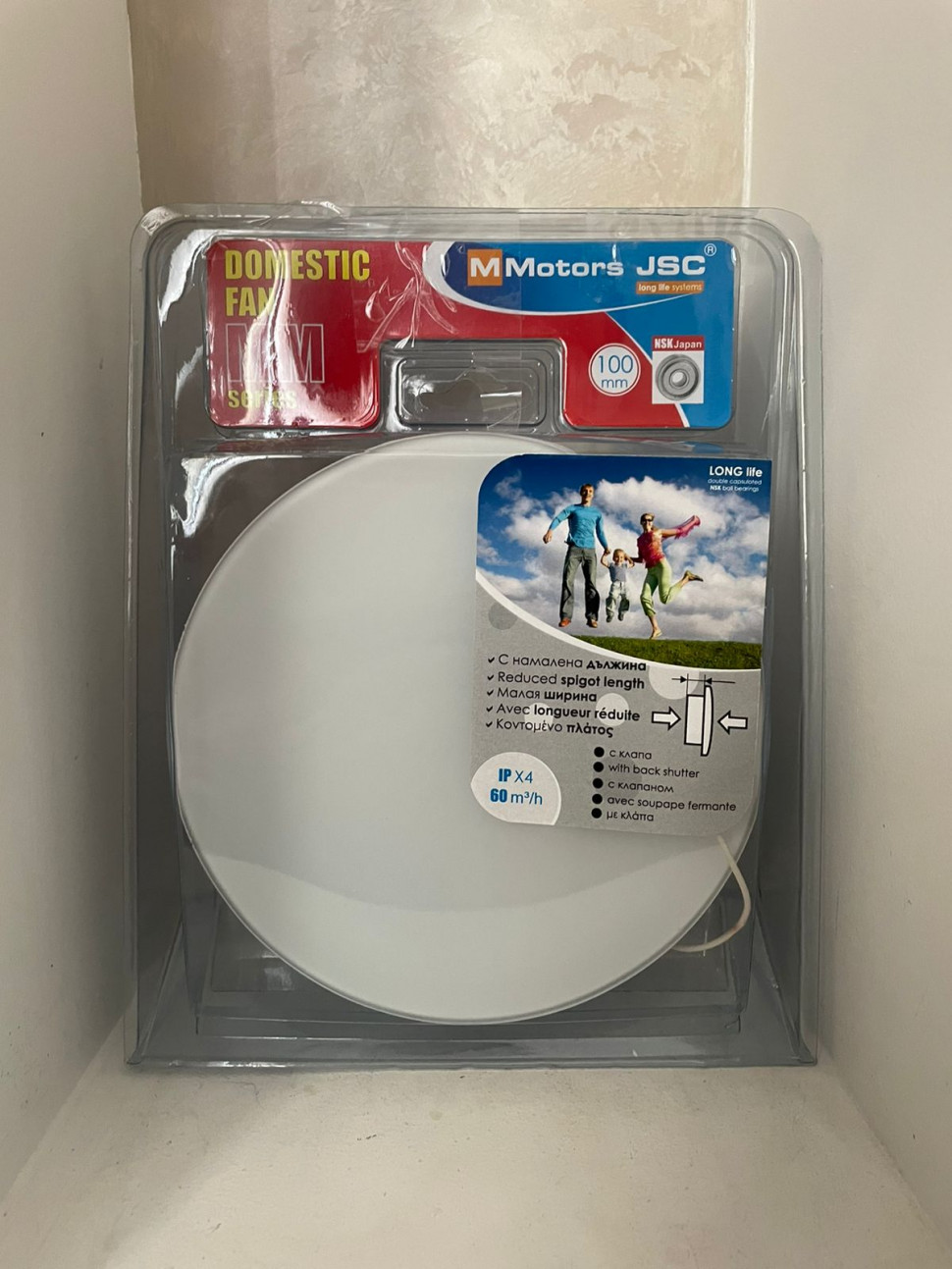 Тонкий бесшумный вытяжной вентилятор для ванной Mmotors ММР 100 матовое стекло круг белый