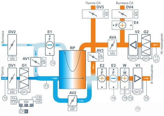 - Тип вентустановки Приточно-вытяжная установка, с тепловым насосом, с противоточным рекуператором.