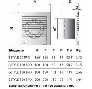 Вентилятор ELICENT E-STYLE 100 PRO с обратным клапаном