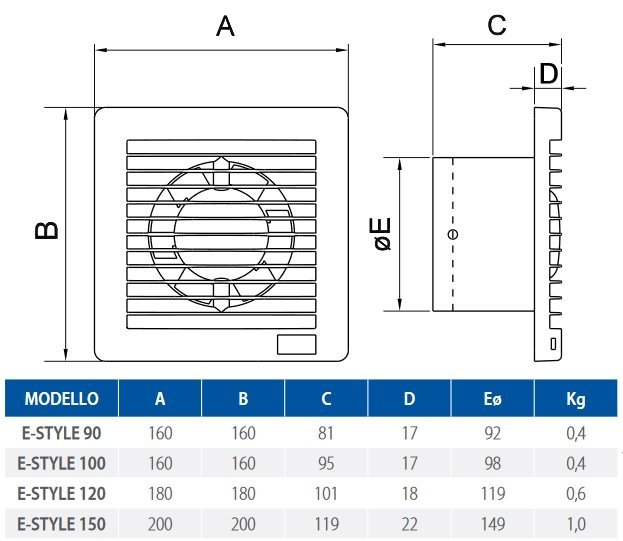 Вентилятор ELICENT E-STYLE 100 PRO BB с обратным клапаном на шарикоподшипниках