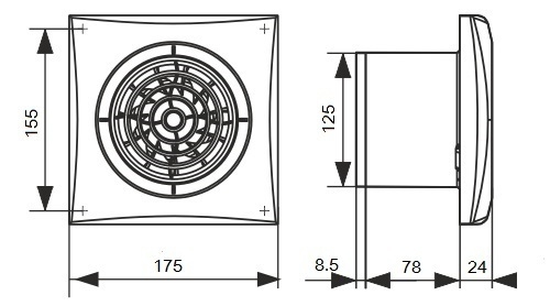 Укороченный фланец – позволит установить вентилятор в вентиляционную шахту или присоединить к воздуховоду Ø100, 125 мм.