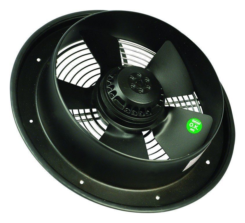 Осевой монофазный вентилятор выпускается нескольких типоразмеров и является продуктом высокотехнологичного производства. Корпус вентилятора выполнен из металла, окрашен порошковой эмалью в черный цвет. При изготовлении данного вентилятора использован внешний роторный двигатель. Оснащен съемной круглой решеткой, которая может быть легко снята для очистки и другого обслуживания. Направление потока воздуха осуществляется по направлению часовой стрелки. Скорость потока воздуха можно отрегулировать с помощью дополнительного контроллера. Дополнительно оборудован термоконтактом, что защищает двигатель от перегрева. Вентиляторы применяются для охлаждения наружных блоков кондиционеров, чиллеров, электрических панелей и различных теплообменников в жилых, производственных, офисных, торговых зданиях, ресторанах и пр. Вентилятор предназначен для эксплуатации в помещениях с температурой не более 72 С и относительной влажности до 80 %.