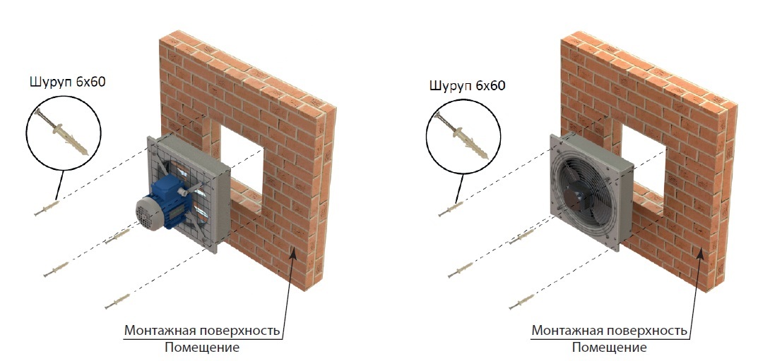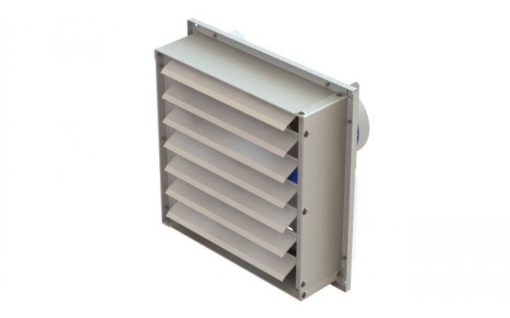 Осевые вентиляторы состоят из монтажной сетки, на которую закреплено алюминиевое рабочее колесо и электродвигатель, а также из рамки с жалюзи, которая закрывает вентилятор с внешней стороны помещения. На стальной корпус осевого вентилятора наносится порошковое покрытие RAL7035. Алюминиевое рабочее колесо защищено хромированной сеткой.