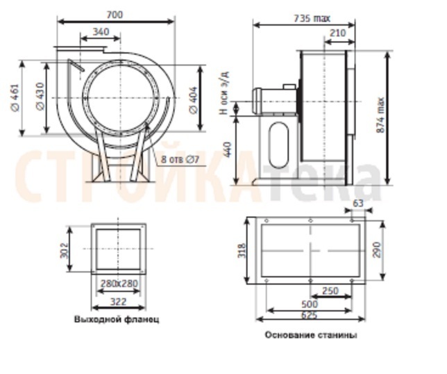 Вентилятор радиальный ВЦ 14-46 (ВР-280-46) №4,0 (4кВт/1500об) Среднего давления