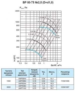 Вентилятор радиальный ВР 80-75 №2,5 (0,55кВт/3000об) Низкого давления