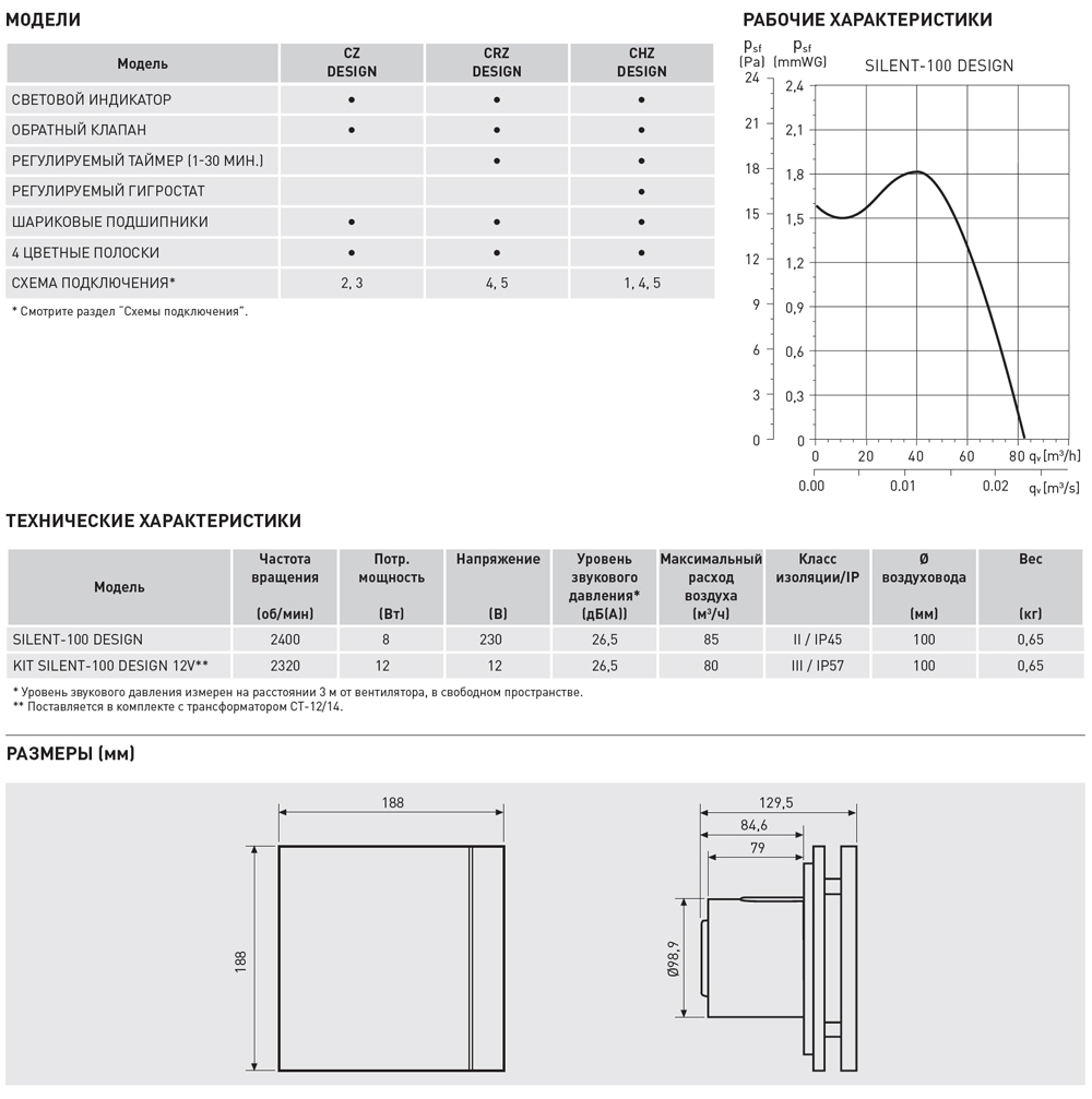 Осевые вентиляторы SILENT 100CZ DESIGN, предназначен для настенной или потолочной установки. специально разработан для решения проблем с вентиляцией в ванных комнатах и небольших помещениях. SILENT 100CZ DESIGN- вентилятор для ванной с обратным клапаном.