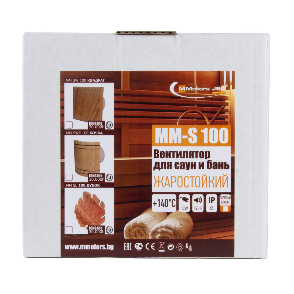 Высокотемпературный жаростойкий вентилятор Mmotors для бани и сауны мм-s 100 бочка (дерево) с обратным клапаном